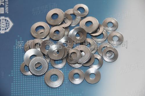 晋元达企业专业生产机车专用NFE25511法标单面压纹碟形 自锁垫圈.全部采用65MN.70MN.SK5.304.316.A2.A4等国产进口优质钢材.经严格热处理绝对保证质量.同时可按要求对所有不锈钢材质进行调质以提高硬度和弹性功能.表面处理有氧化发黑.盐雾镀锌去氢和达克罗等.常用M3-M20现货规格齐全.品质出众.价格合理.欢迎各经销商加盟合作.现与多家国际外贸企业合作.长期出口德国.意大利等欧美国家地区!不断发展中的晋元达是你理想的合作伙伴!